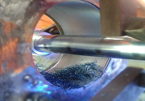 После нескольких наплавок необходимо заменить вал на броштангу и произвести промежуточную расточку (фрезеровку) отверстия.